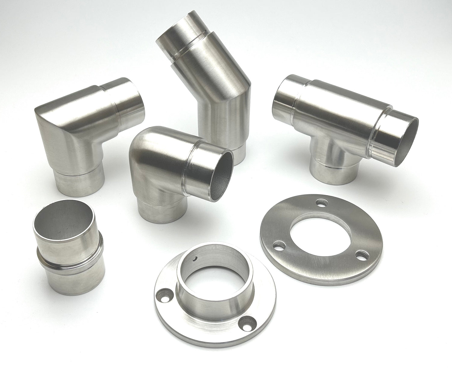 Vores sortiment i rustfrit stål fittings består af et bredt udvalg af fittings der passer til vores rundrør i rustfrit stål i størrelserne Ø26.9mm, 33.7mm og 42,4mm.